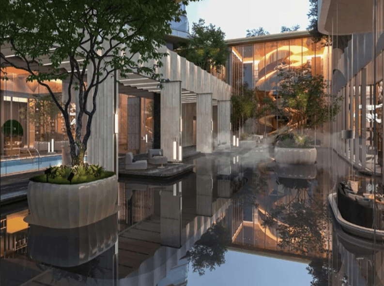 除此之外,项目还对标新加坡高端银峰公寓,特邀顶级园林设计团队JTL加特林,打造立体都会度假式园林,下沉式高定艺术空间中,设置了宴会厅、艺术酒廊、健身房等休闲娱乐配套,一楼核心景观会客花园约7000㎡,氛围感拉满,让业主在家就能享受度假般的居住体验。地下车库更是惊艳,带龙纹麟的地下车库入口,超耐磨地坪车道+环氧地坪车位,搭配星空顶天花,点点繁星点亮业主归家之路,入户大堂挑高约9.5米,对标星级酒店,智能感应开启的双扇厚重大门,给人以尊崇如贵族般的归家仪式感。